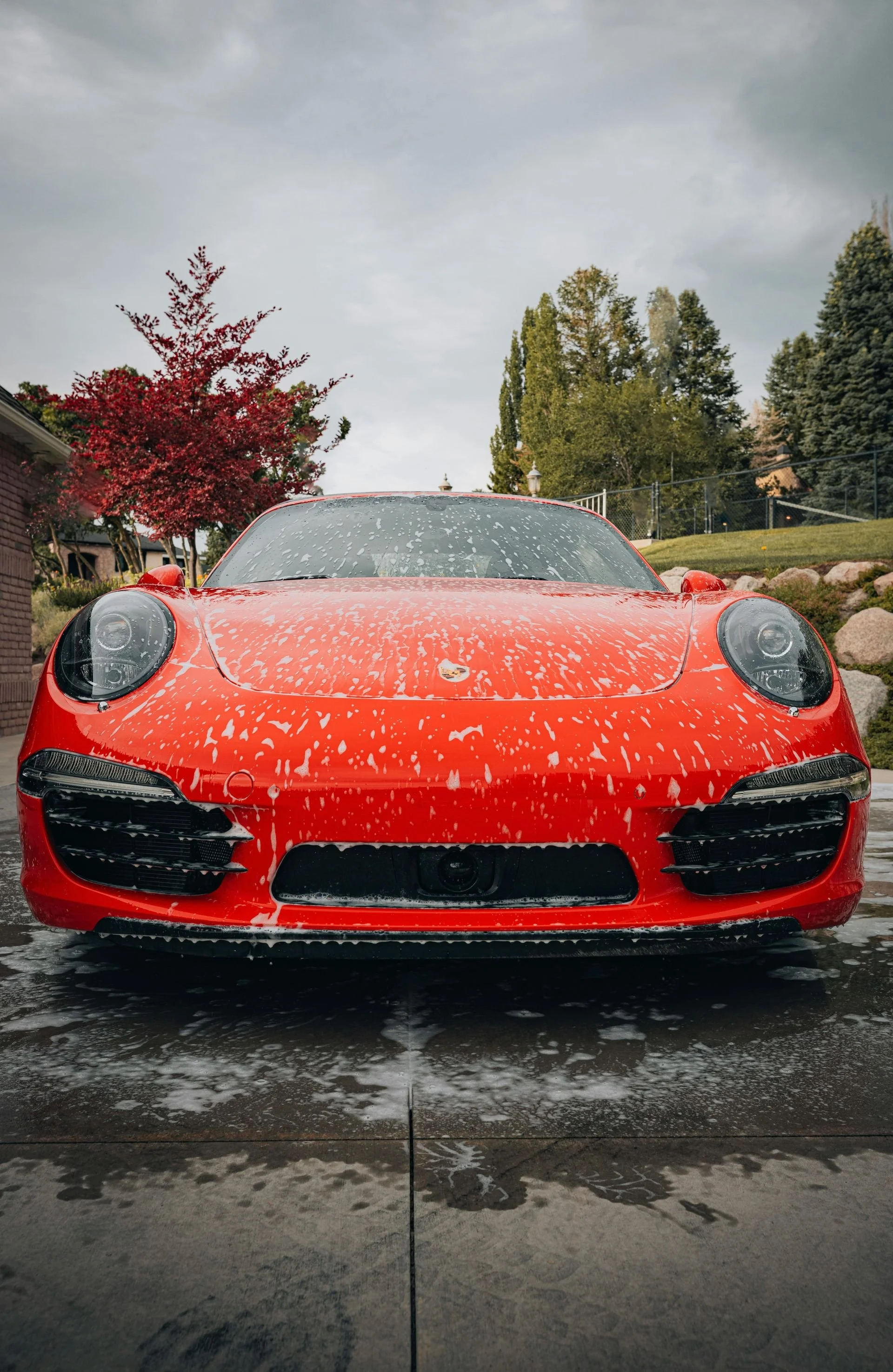 Foam soap spray on rims and body